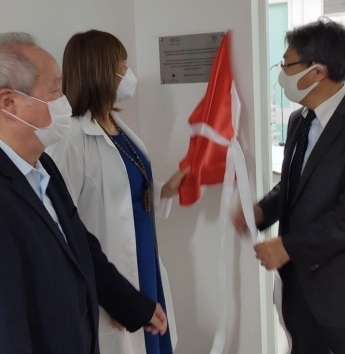 (Cônsul-Geral Sano, Diretora Presidente Leila Beltrão e Conselheiro Nelson Jinzenji)